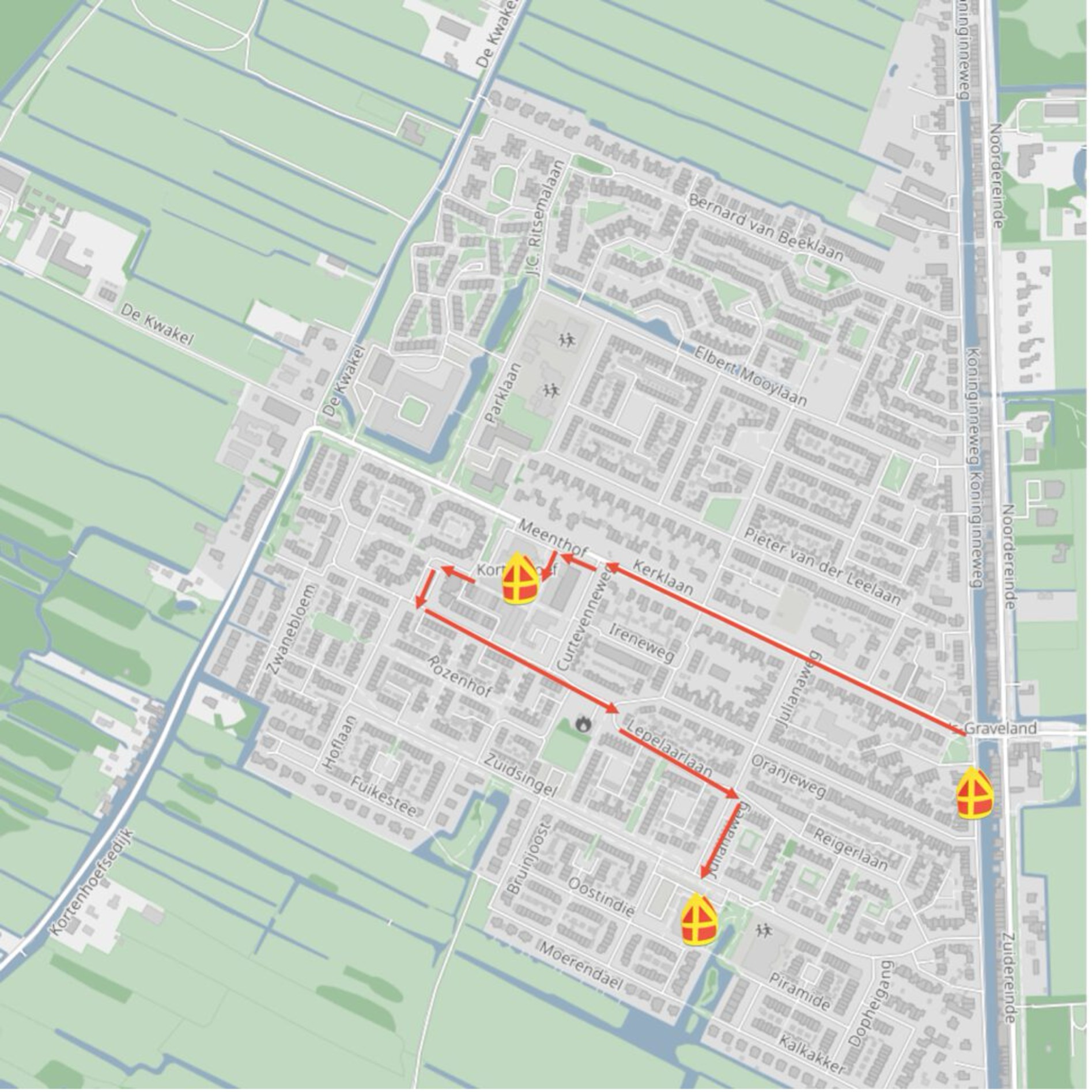 Rond 12.00 uur Aankomst per boot bij de hoek Oranjeweg – Emmaweg